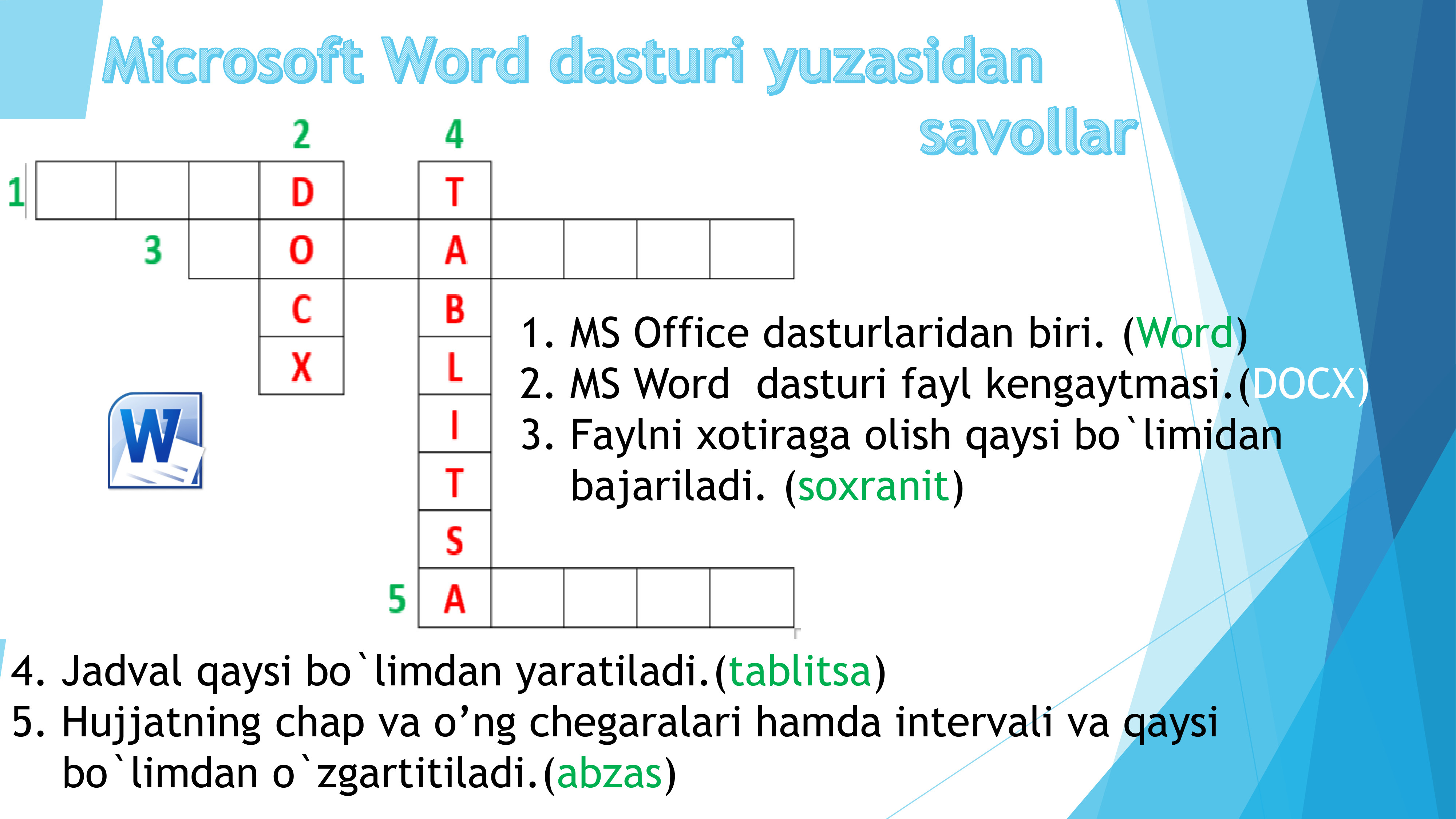 1- mavzu: Matn stillarini sozlash va ulardan foydalanish